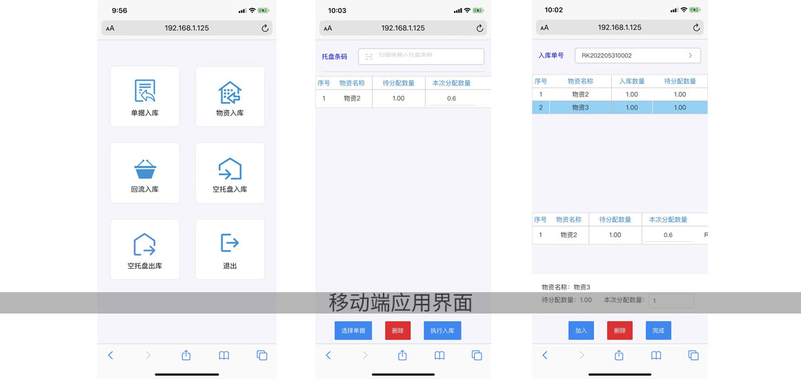 基礎(chǔ)數(shù)據(jù)管理 | 托盤條碼管理 | 物資入庫 | 物資出庫 | 自動(dòng)回流 | ||||
