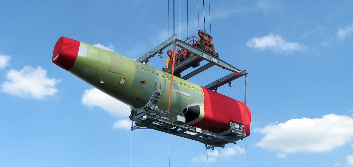 吊具用于飛機大部件在天津港和漢堡港的裝載和卸載。可吊裝A319/A320/A321型號的飛機部件。