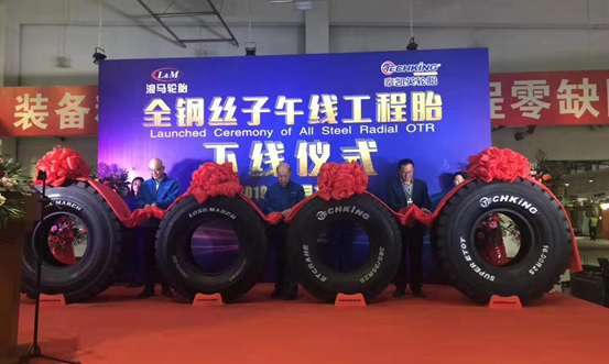 12月19日,朝陽浪馬輪胎有限公司擴(kuò)產(chǎn)項(xiàng)目一期60萬套全鋼載重子午胎和10萬套全鋼子午工程胎下線儀式在遼寧朝陽浪馬輪胎107新車間舉行。賽象科技應(yīng)邀出席下線儀式。