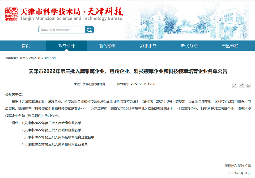 近日,天津市科學(xué)技術(shù)局發(fā)布了《天津市2022年第三批入庫(kù)雛鷹企業(yè)、瞪羚企業(yè)、科技領(lǐng)軍企業(yè)和科技領(lǐng)軍培育企業(yè)名單公告》,天津賽象科技股份有限公司位列“天津市科技領(lǐng)軍企業(yè)”榜單。