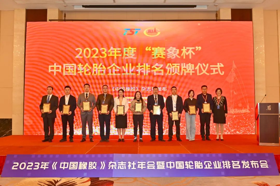 會(huì)上,《中國(guó)橡膠》雜志社隆重發(fā)布“2023年度中國(guó)輪胎企業(yè)排行榜”、“2023年度中國(guó)境內(nèi)輪胎企業(yè)排行榜”,并首次發(fā)布了“中國(guó)工程輪胎20強(qiáng)排行榜”。會(huì)議為《中國(guó)橡膠》期刊理事會(huì)新晉企業(yè)授牌,表彰了2023年度《中國(guó)橡膠》雜志社優(yōu)秀信息工作者。中國(guó)橡膠工業(yè)協(xié)會(huì)會(huì)長(zhǎng)、《中國(guó)橡膠》雜志社社長(zhǎng)徐文英、天津賽象科技股份有限公司董事長(zhǎng)兼總經(jīng)理張曉辰、科邁化工股份有限公司董事長(zhǎng)兼總經(jīng)理王樹(shù)華、中國(guó)橡膠工業(yè)協(xié)會(huì)炭黑分會(huì)秘書長(zhǎng)丁麗萍、天津賽象科技股份有限公司副董事長(zhǎng)史航、中國(guó)工業(yè)經(jīng)濟(jì)聯(lián)合會(huì)黨委副書記、副研究員、高級(jí)工程師高家明分別為輪胎企業(yè)授牌。
