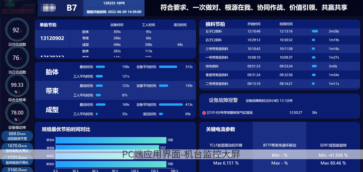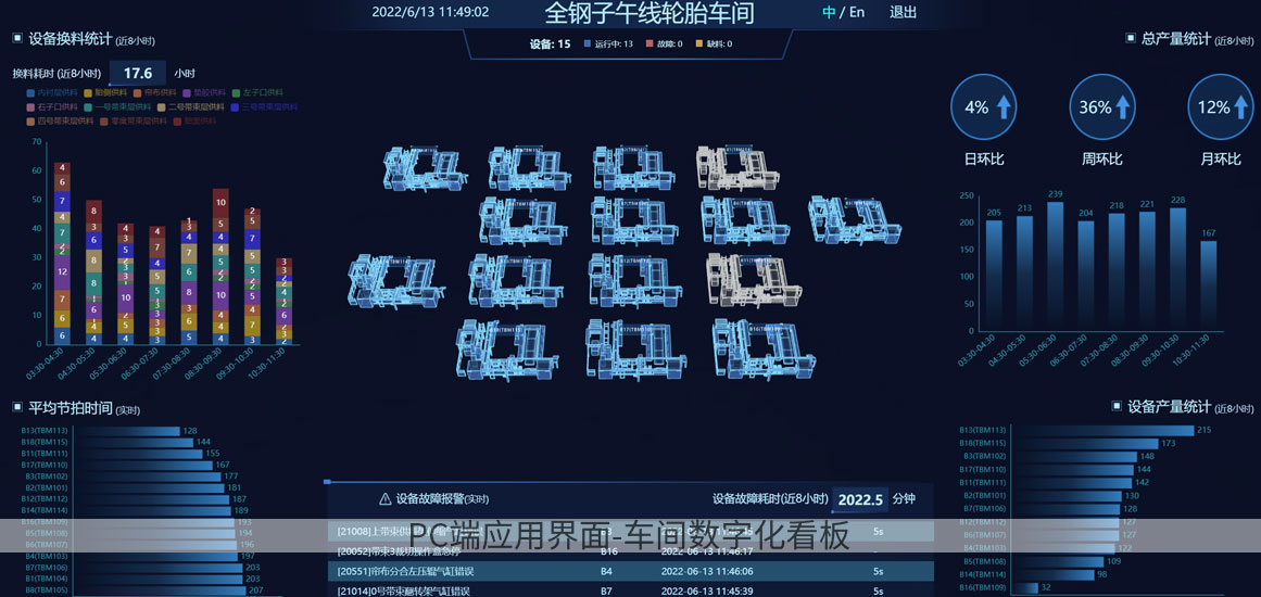 針對貴州省某輪胎5G全聯(lián)接智能工廠,適用于賽象科技生產(chǎn)的輪胎成型機(jī)設(shè)備的設(shè)備數(shù)字化管理及在線監(jiān)控場景.通過設(shè)備物聯(lián)數(shù)據(jù)采集集成設(shè)備數(shù)字化工業(yè)App,為客戶提供了設(shè)備的安全風(fēng)險管理、部件壽命管理、在線維護(hù)指導(dǎo)、效率分析、工藝質(zhì)量監(jiān)控、故障報警監(jiān)控及響應(yīng)管理、產(chǎn)量分析、換料效率管理、關(guān)鍵工藝參數(shù)監(jiān)控、能耗監(jiān)控管理及綜合OEE分析等設(shè)備運(yùn)行階段的產(chǎn)品生命周期管理功能。