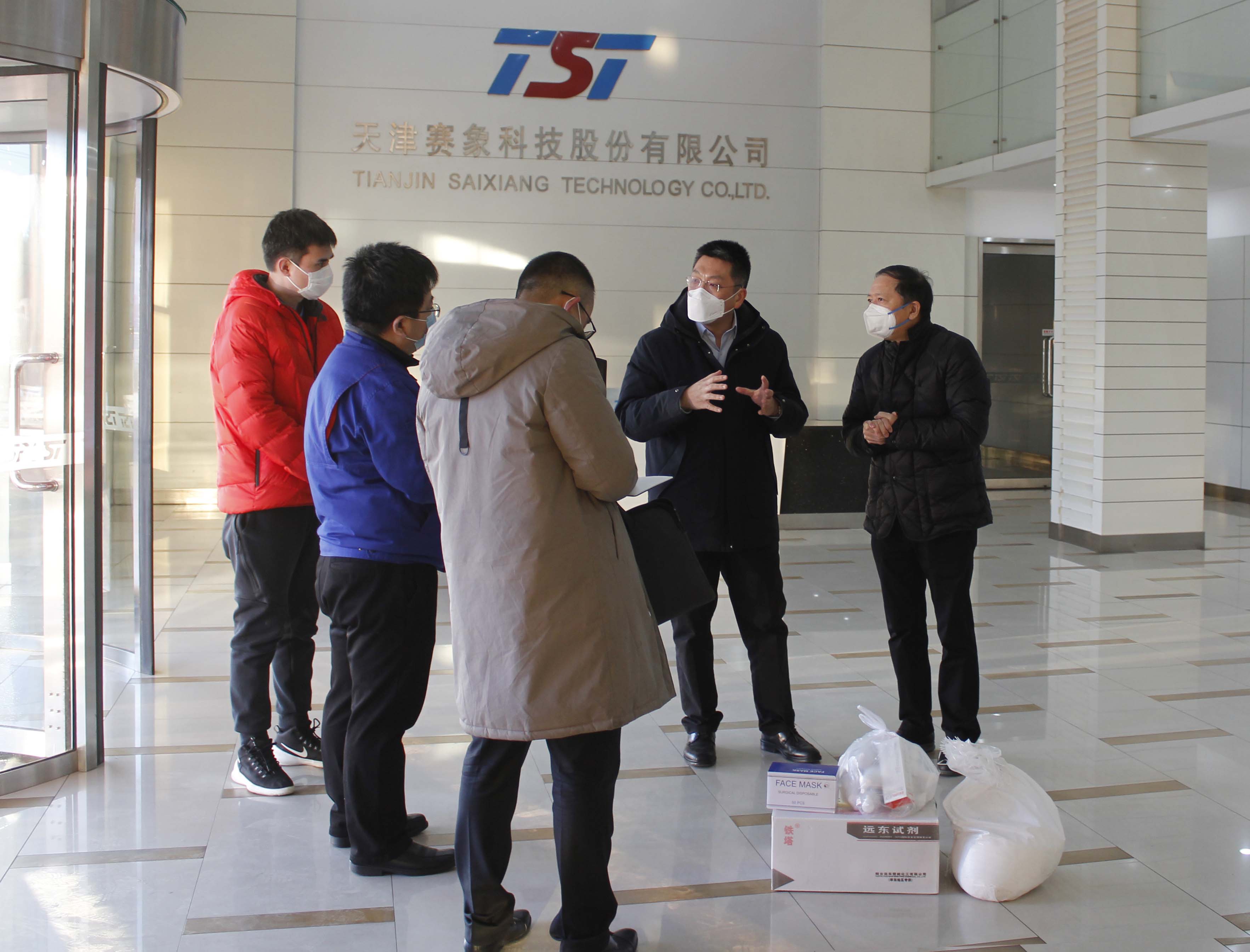 2月16日,濱海高新區(qū)黨委書(shū)記、管委會(huì)主任單澤峰帶隊(duì)蒞臨賽象集團(tuán)檢查企業(yè)節(jié)后復(fù)工及疫情防控工作,并為公司送來(lái)疫情防控物資。賽象集團(tuán)董事長(zhǎng)張建浩接待了單澤峰書(shū)記一行,賽象科技副總經(jīng)理、疫情防控小組副組長(zhǎng)王紅軍向高新區(qū)領(lǐng)導(dǎo)匯報(bào)了公司復(fù)工及疫情防控具體情況。
