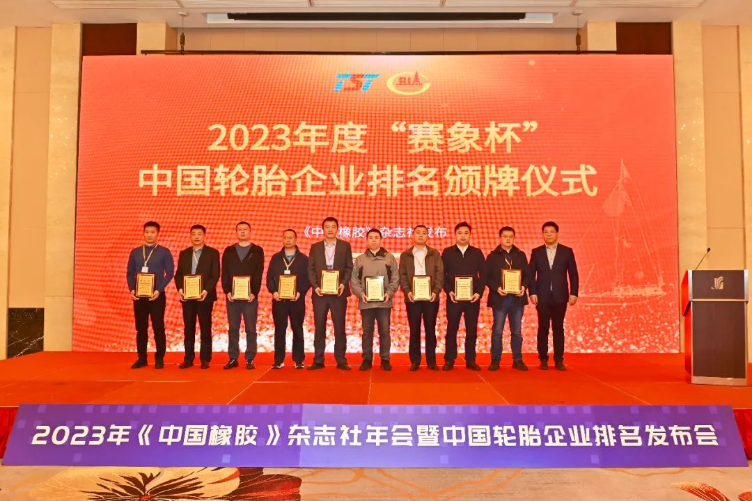 會(huì)上,《中國(guó)橡膠》雜志社隆重發(fā)布“2023年度中國(guó)輪胎企業(yè)排行榜”、“2023年度中國(guó)境內(nèi)輪胎企業(yè)排行榜”,并首次發(fā)布了“中國(guó)工程輪胎20強(qiáng)排行榜”。會(huì)議為《中國(guó)橡膠》期刊理事會(huì)新晉企業(yè)授牌,表彰了2023年度《中國(guó)橡膠》雜志社優(yōu)秀信息工作者。中國(guó)橡膠工業(yè)協(xié)會(huì)會(huì)長(zhǎng)、《中國(guó)橡膠》雜志社社長(zhǎng)徐文英、天津賽象科技股份有限公司董事長(zhǎng)兼總經(jīng)理張曉辰、科邁化工股份有限公司董事長(zhǎng)兼總經(jīng)理王樹(shù)華、中國(guó)橡膠工業(yè)協(xié)會(huì)炭黑分會(huì)秘書長(zhǎng)丁麗萍、天津賽象科技股份有限公司副董事長(zhǎng)史航、中國(guó)工業(yè)經(jīng)濟(jì)聯(lián)合會(huì)黨委副書記、副研究員、高級(jí)工程師高家明分別為輪胎企業(yè)授牌。