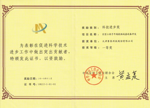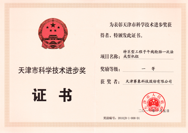 天津市科技進(jìn)步一等獎