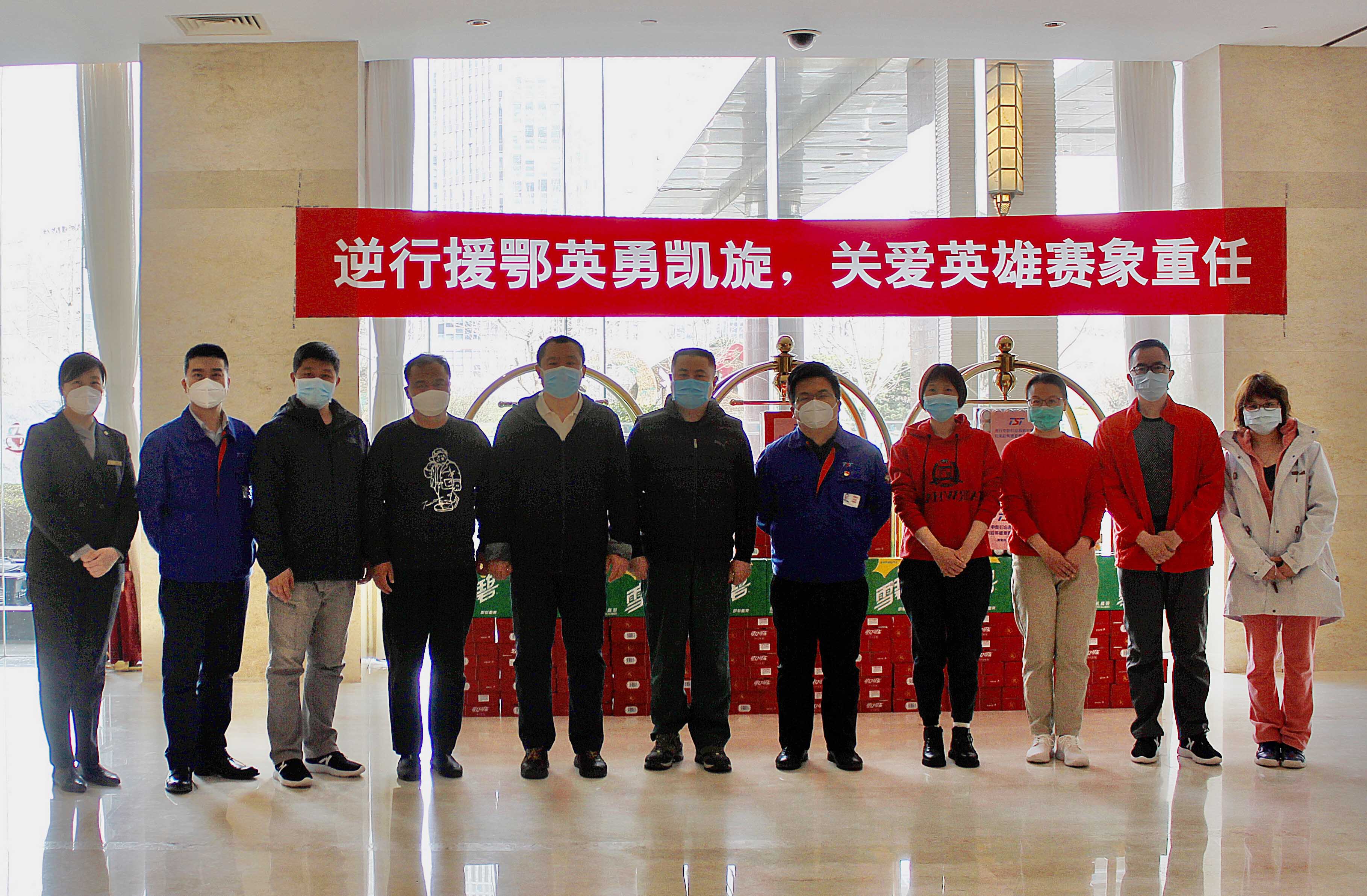 3月19日,天津市援鄂醫(yī)療隊返回人員入住賽象酒店進行返津后的休整恢復,為了對抗疫英雄表示致敬和關(guān)愛,確保他們在休整期間更好的生活,賽象集團向入住賽象酒店的援鄂醫(yī)療隊隊員捐贈了生活物資。3月21日下午,貼著“逆行中您們忘我救護病患,歸來后英雄更要保重自己!”問候語的一箱箱飲料伴隨著賽象人拳拳關(guān)切之心送到了援鄂隊員的駐地,天津市第十一批援漢醫(yī)療隊領(lǐng)隊、環(huán)湖醫(yī)院副院長佟小光及部分援鄂醫(yī)護人員代表醫(yī)療隊接受了捐贈,也向賽象集團表示感謝。